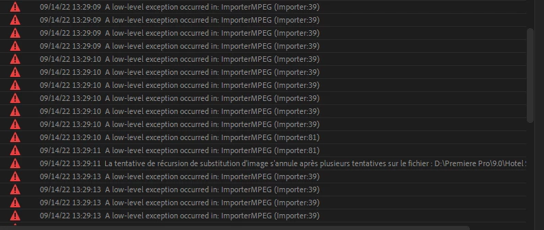 Bonjour, depuis la dernière mise à jour j'ai ce problème dès l'ouverture d'un projet: le logiciel crash et m'indique ce message "Adobe ne dispose plus d'une mémoire système suffisante".