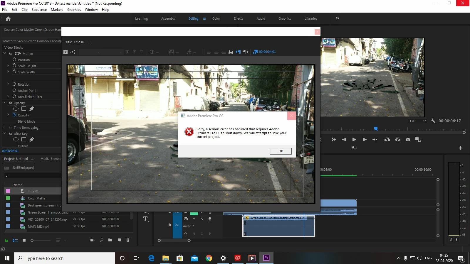 Adobe premier pro cc 2019 showing serious error has occurred while opening text option
