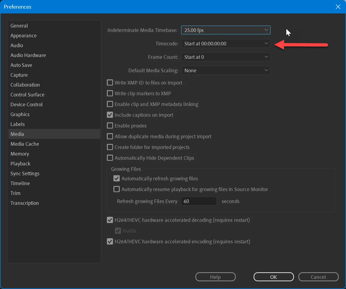Adobe Premiere 2024 no lee timecode XDCAM