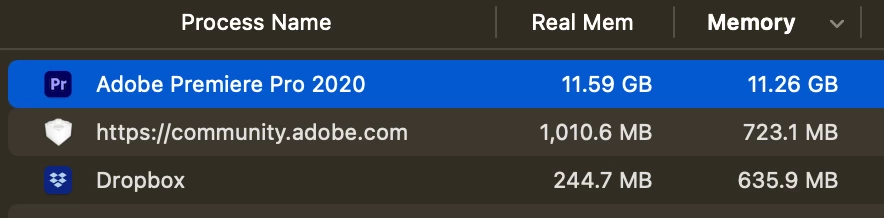 This is probably 5 minutes after Adobe Premiere being open, and idle, no projects open.