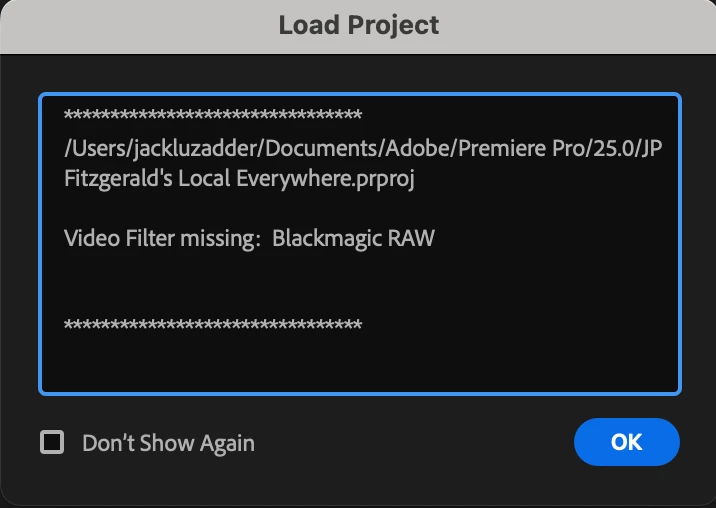 Premiere isn't able to read brawl files. I get this error anytime I launch the project. I have Blackmagic RAW installed on my Macbook Pro. It can read files in preview fine. Any idea how to fix this?