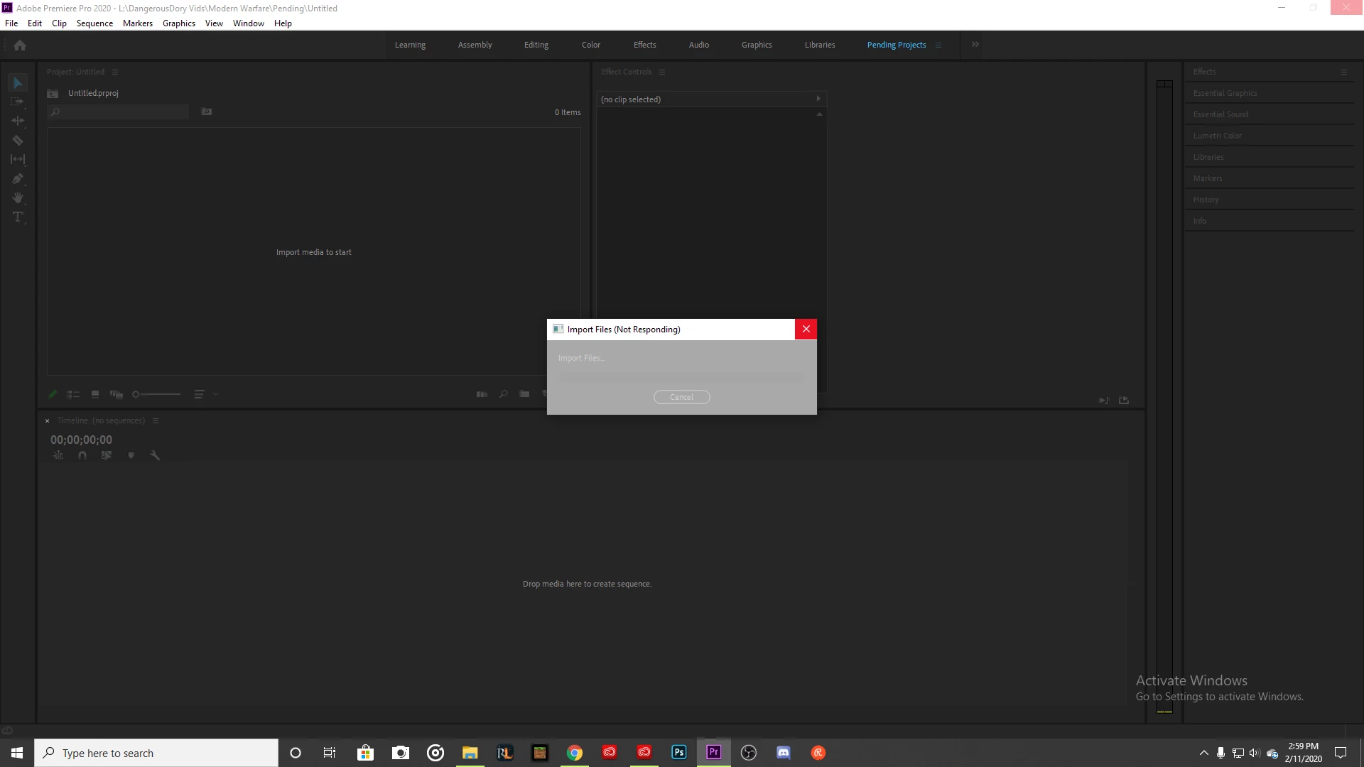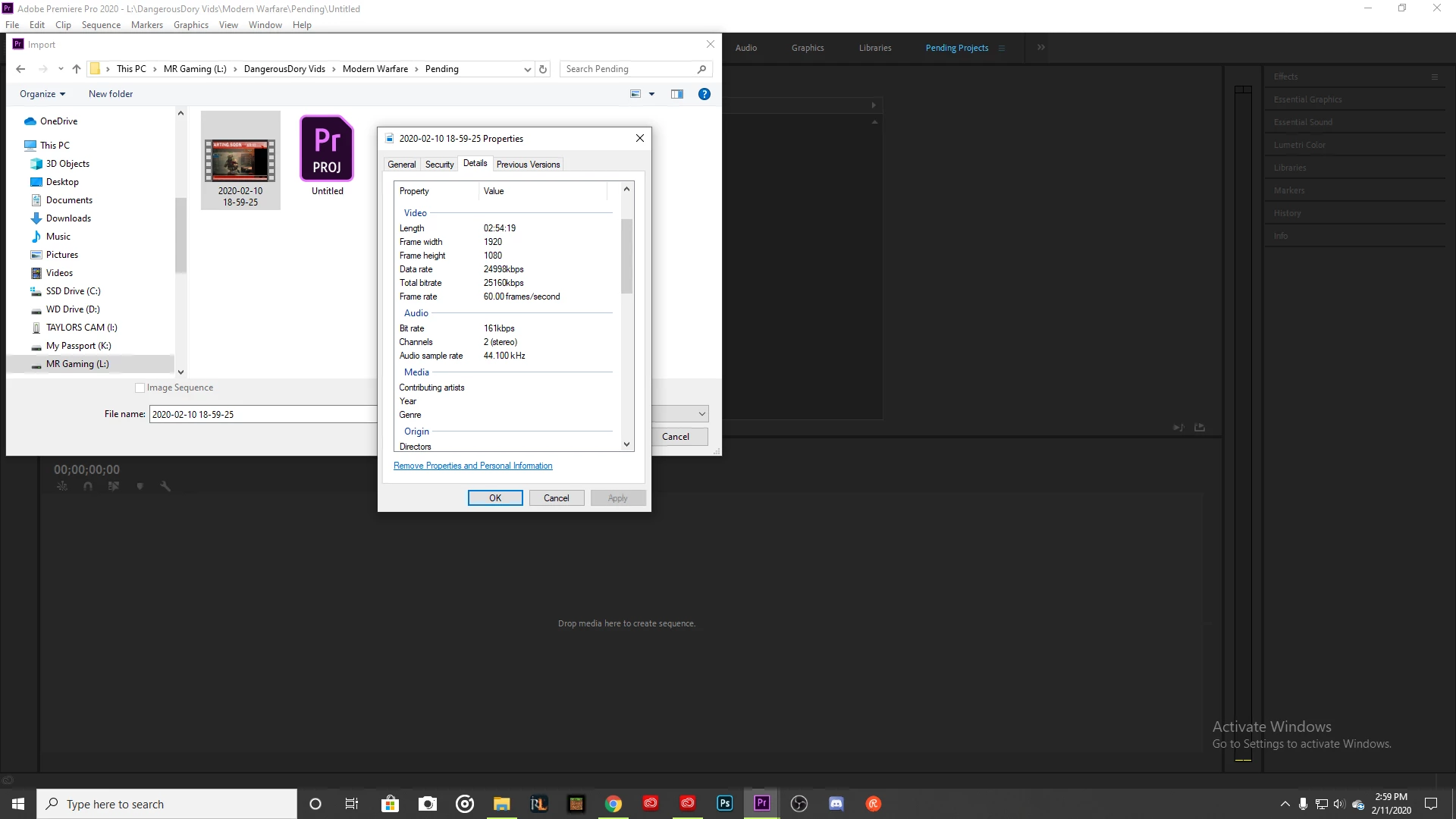 Adobe Premiere Pro 2020 (14.0.1) error while importing gameplay footage