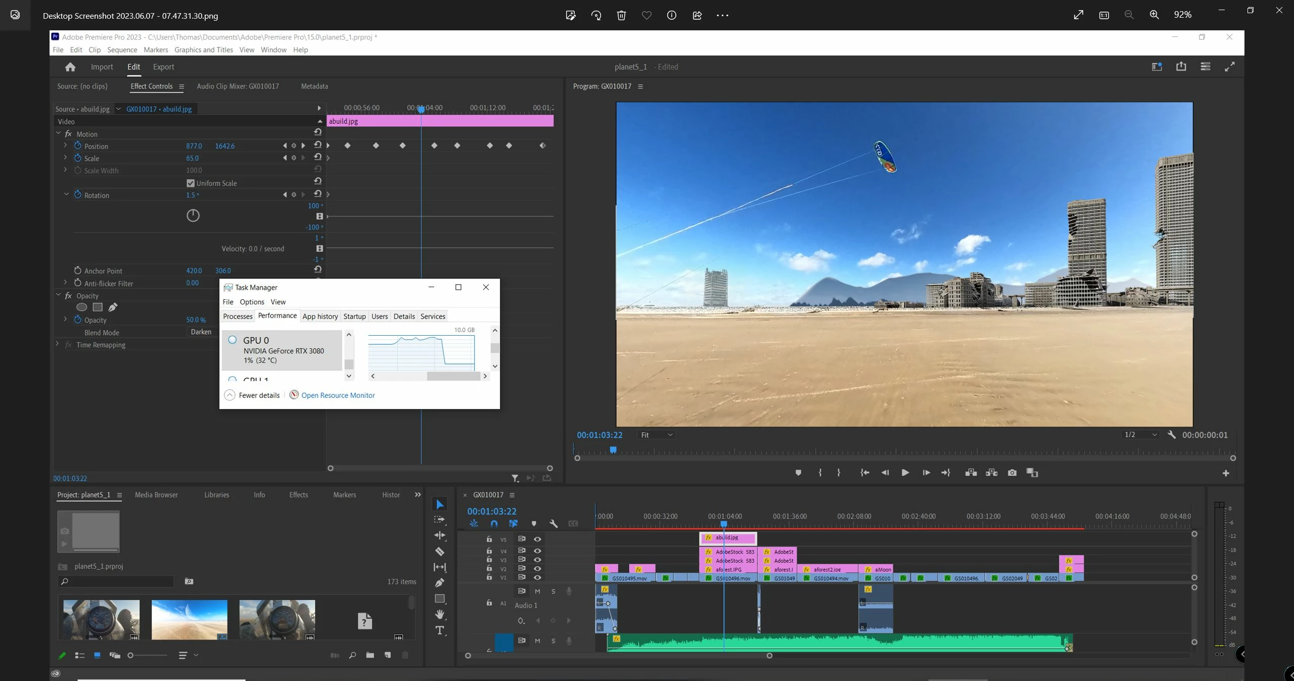 Open the Task Manager to monitor the GPU memory while editing your project.
