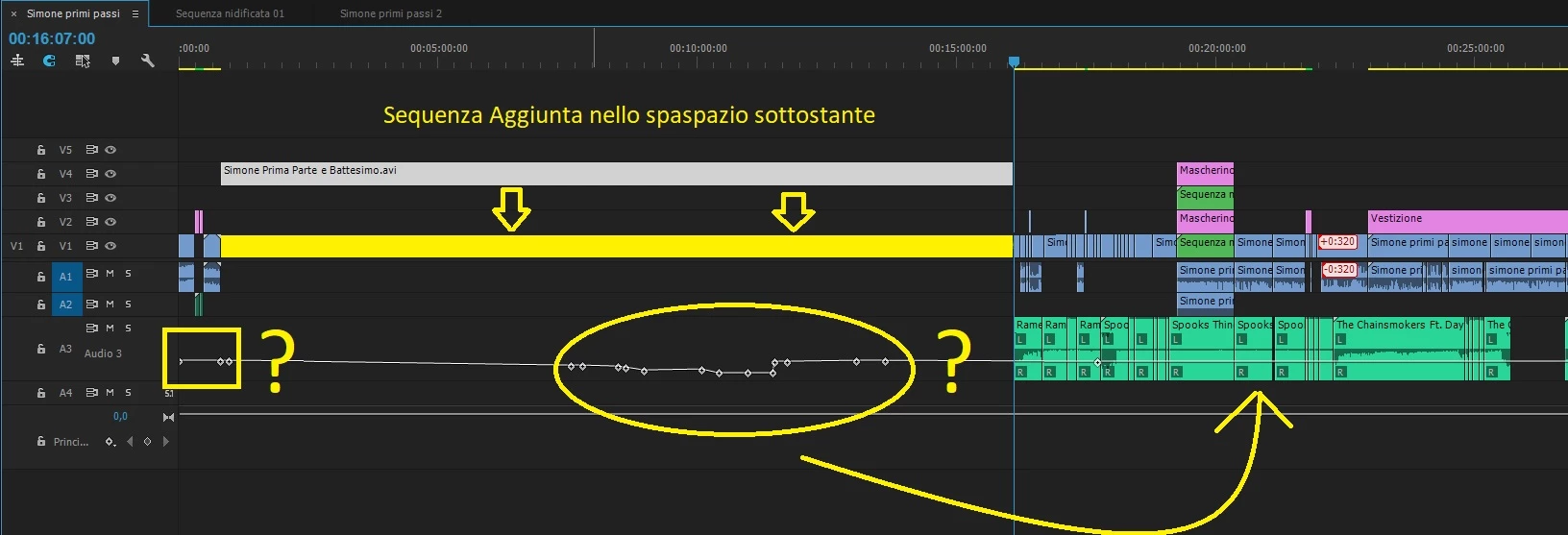 In fact, by performing all the procedure just exposed I get what I want (that is, it moves both the various video tracks and the various audio tracks) but you generate an astonishing situation (see the image posted below for clarity) ie the audio keyframes I do not undergo "NO" movement, ie they DO NOT follow the track Audio 3 in step by step, what is the case because it is not enabled as A1 and A2?