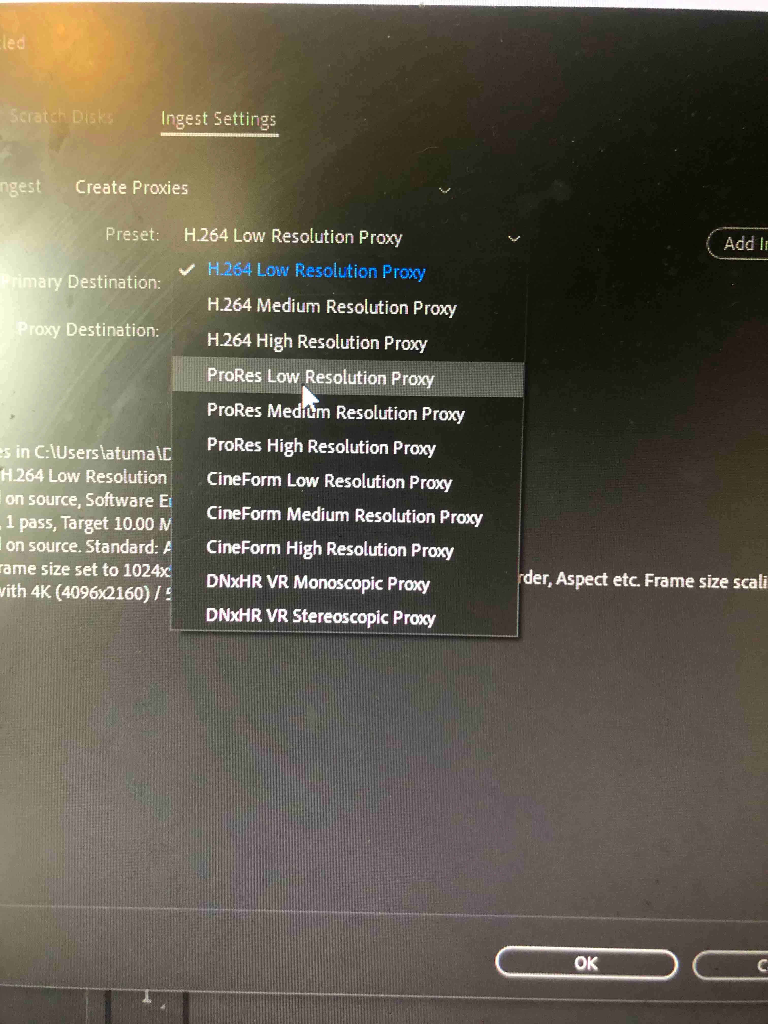 But in PR 2020, if you pick "copy and proxies," you get presets like "Copy &  1024x540 Apple..," which is what you also get in 2019.