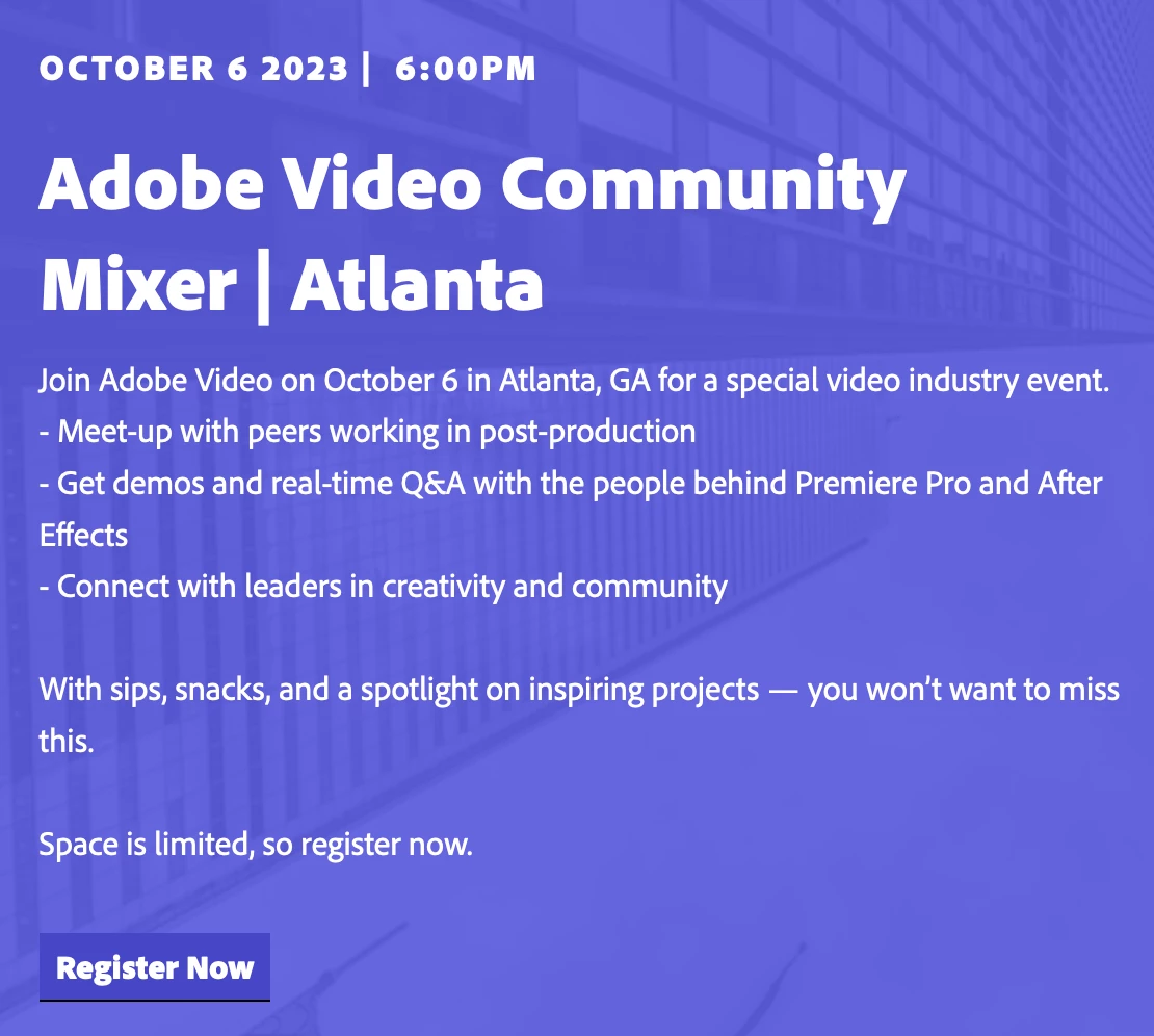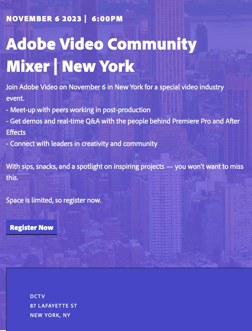 Adobe Video and Audio Community Events - meet the team and fellow post-production colleagues!
