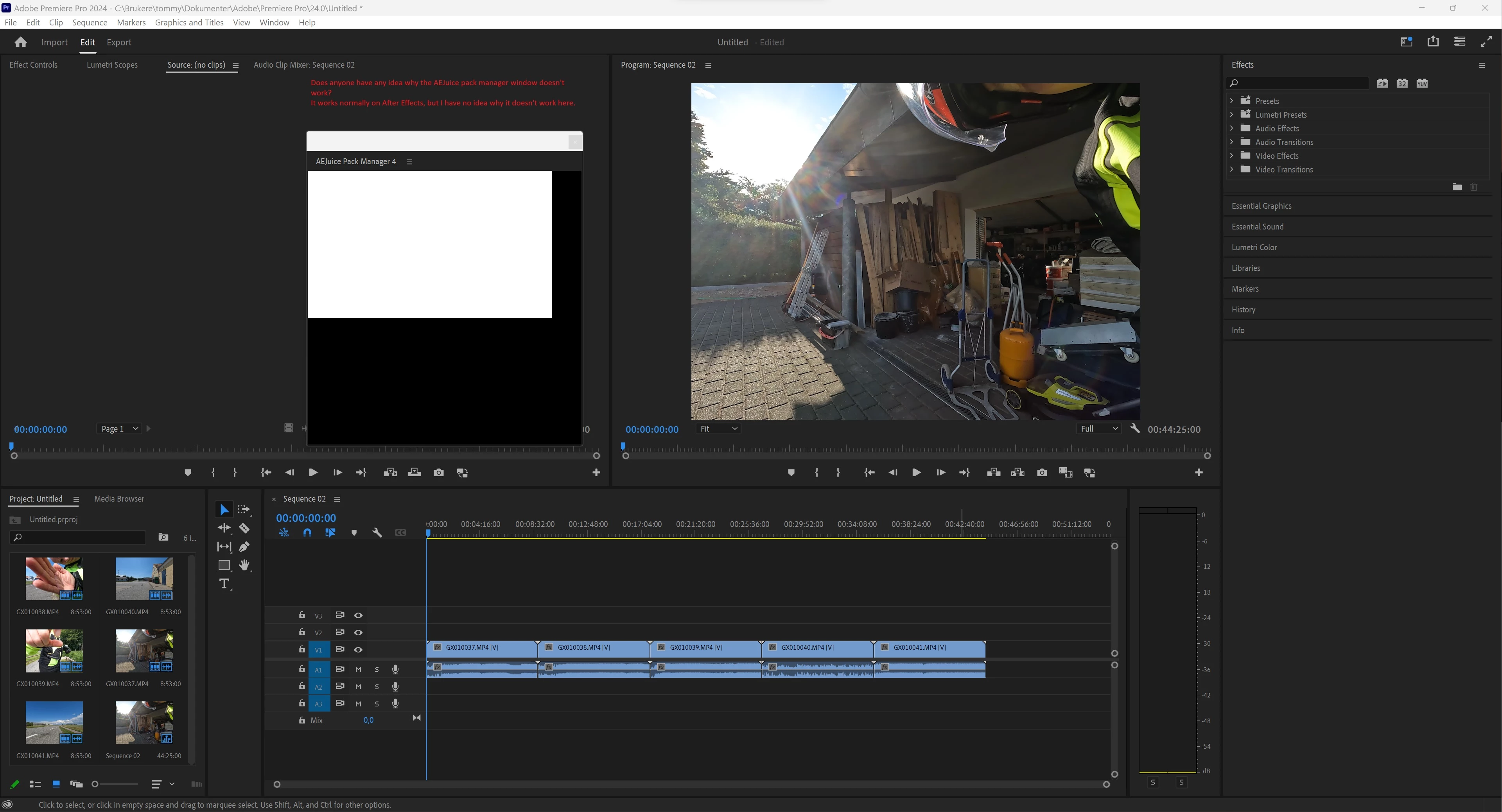 I'm a total newbie, don't know much about this, but I think this must be related to some adjustments or graphic adjustment in Premiere Pro, because AEJuice has not been able to help me.