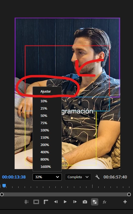 "Ajustar en el monitor del programa" shortcut no funciona