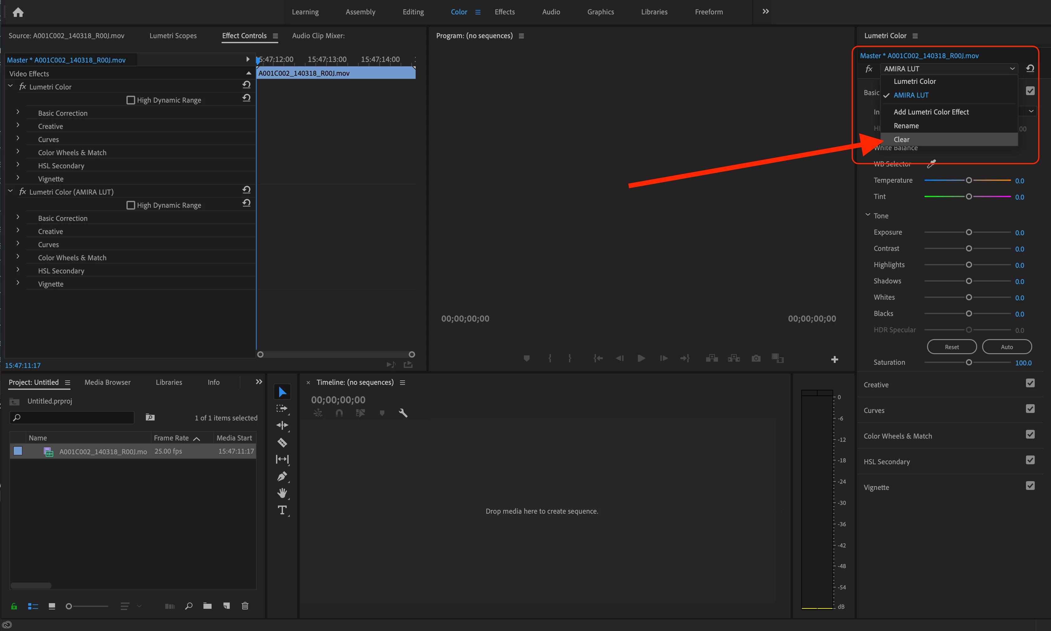 When importing footage, embedded LUT comes in automatically. First this is an issue because of project bloat. We know about the workaround, but then if we move to another workstation, when re-linking footage, it creates another instance of the embedded LUT in the master effect. I have projects where master effects on clips have 4 instances of the Amira LUT. This is in addition to the LUT not displaying consistently if we do decide to keep it on the master effect.
