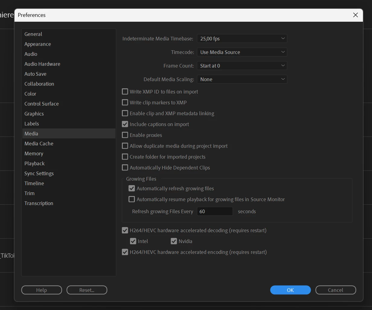All the latest drivers, and updated Premiere Pro are installed. For reference, I have attached a screenshot of my Intel / Nvidia PC, where hardware encoding/decoding is available.
