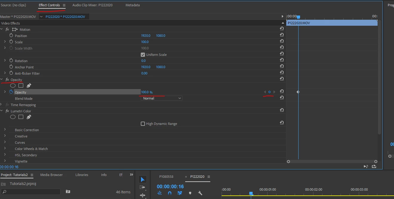 Note the red highlights ... Effects Control panel, Opacity section, set  keyframe with the diamond to the far right, set the opacity as a percentage (0 is black) ... place another keyframe later by clicking the diamond again, adjust percentage of opacity to taste.