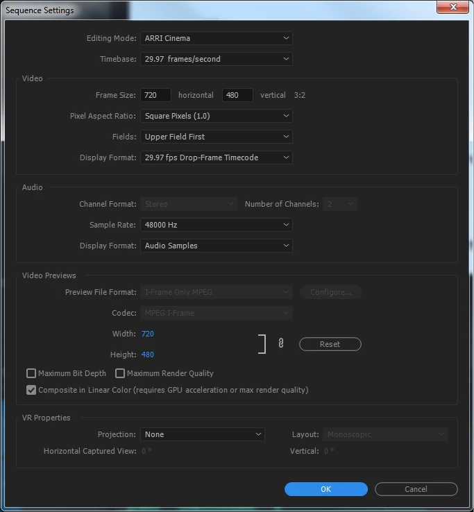 I'm having issues with Adobe Premiere Pro CC 2017's aspect ratio settings. I'm creating a video out of JPEGs made in InDesign sized at 720px by 480px. I've set up my Premiere project according to those same dimensions: