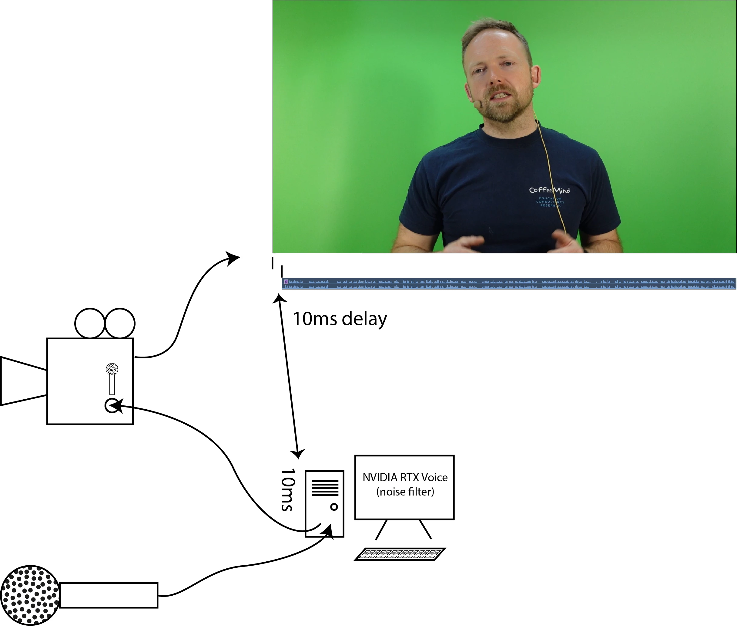I have my studio in an extremely noisy environment and I would like to NOT have to fiddle with recording on a separate sound recorder and merge the clips on Premiere Pro, so I have found this solution where I run the audio from the microphone through a computer running NVIDIA RTX Voice and then the cleaned audio runs into the camera, so that the sound is added to the video live as it is recorded. This way I can start edit right away in Premiere pro as the sound is exactly how I want it without noise.