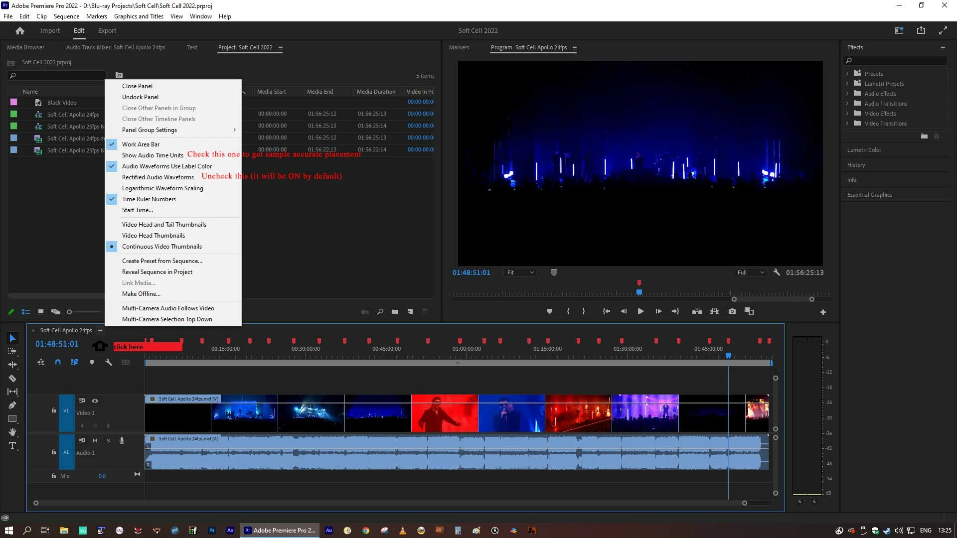 I'm having an odd issue or glitch with the audio meter in Premiere Pro (version 22.5.0) and using the audio meter to sync up multiple cameras using a slate.