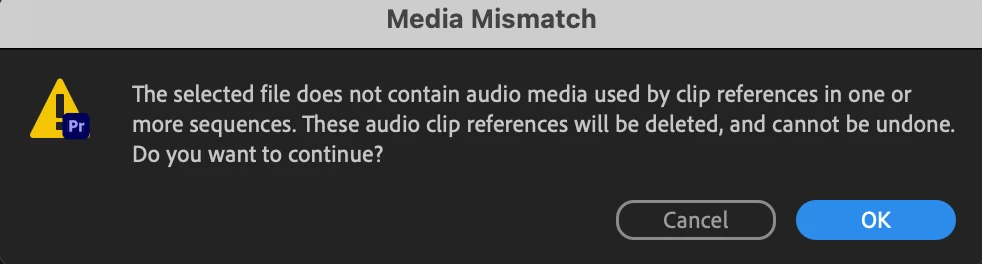 PPro version 24.3 is bugged with linking audio files. I reinstalled the 24.2.1 version a the problem is solved.