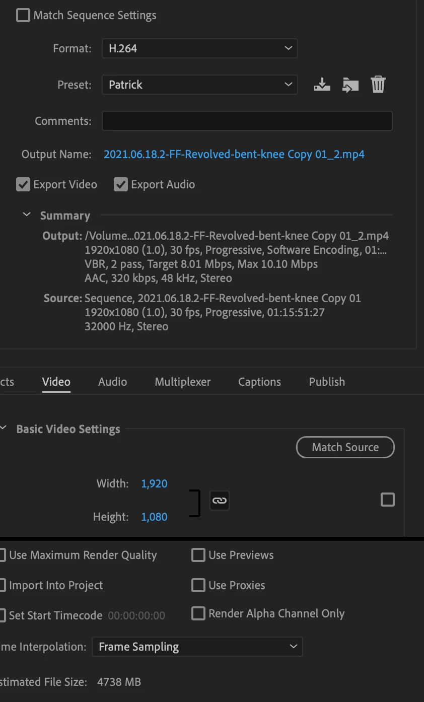 I've read a lot of the posts but don't seem to find an answer that work for me so I'm trying again. Have the new Macbook Pro all fitted out. I'm going to put the screen grab of how I'm exporting. The video is 75 mins file is 24GBs editng is just into and outro. Latest version of Premiere. Here are my export settings.