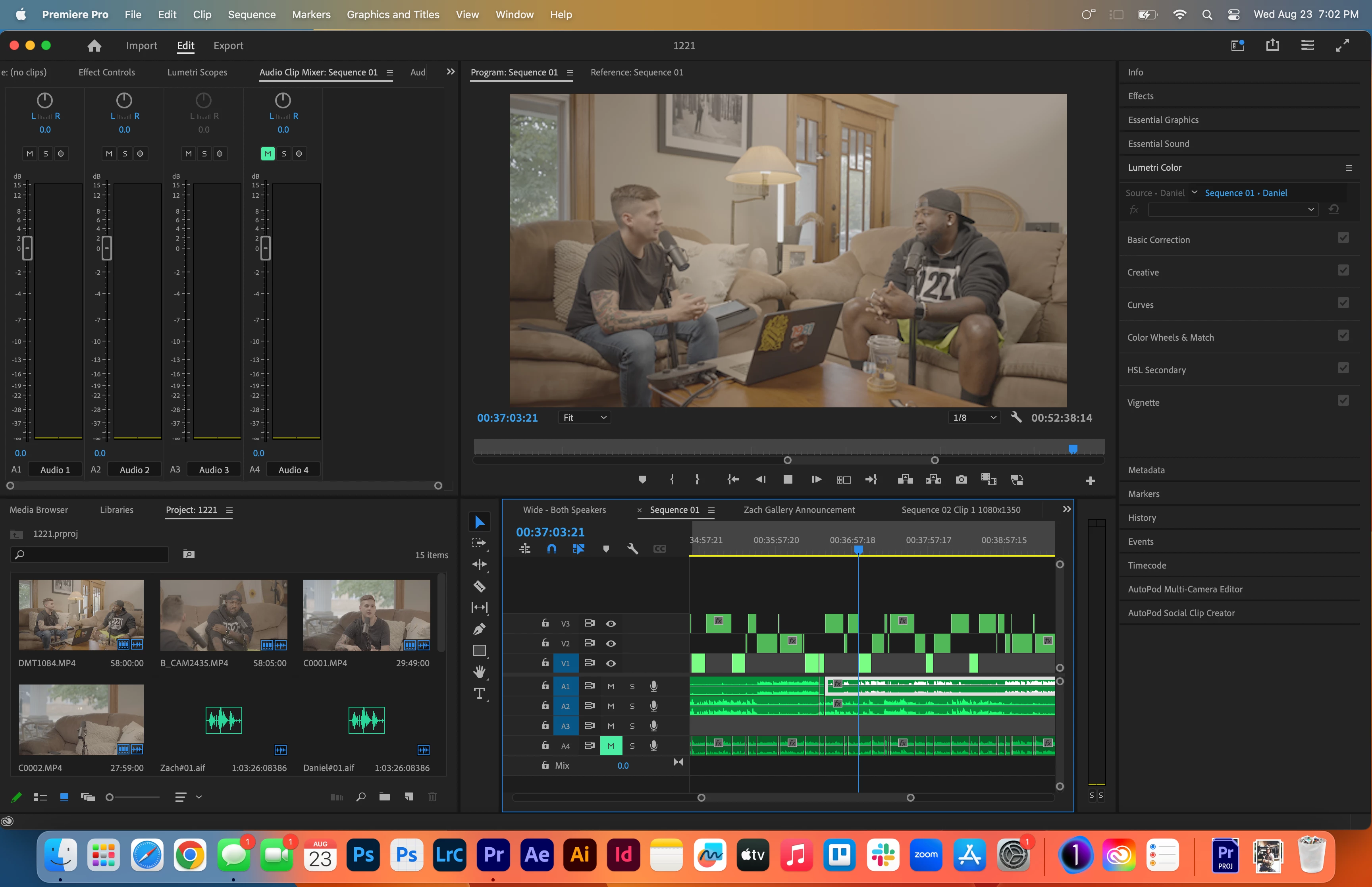 Editing a podcast and I nested the audio to each specific shot of the speaker. Now halfway through the edit the audio has stopped playing back. I can see the levels on the timeline for the audio track, but there is not output. See attached media. I can double click into the nest and hear the audio playback just fine, but in the master sequence there is not any sound output from these two specific speaker channels.