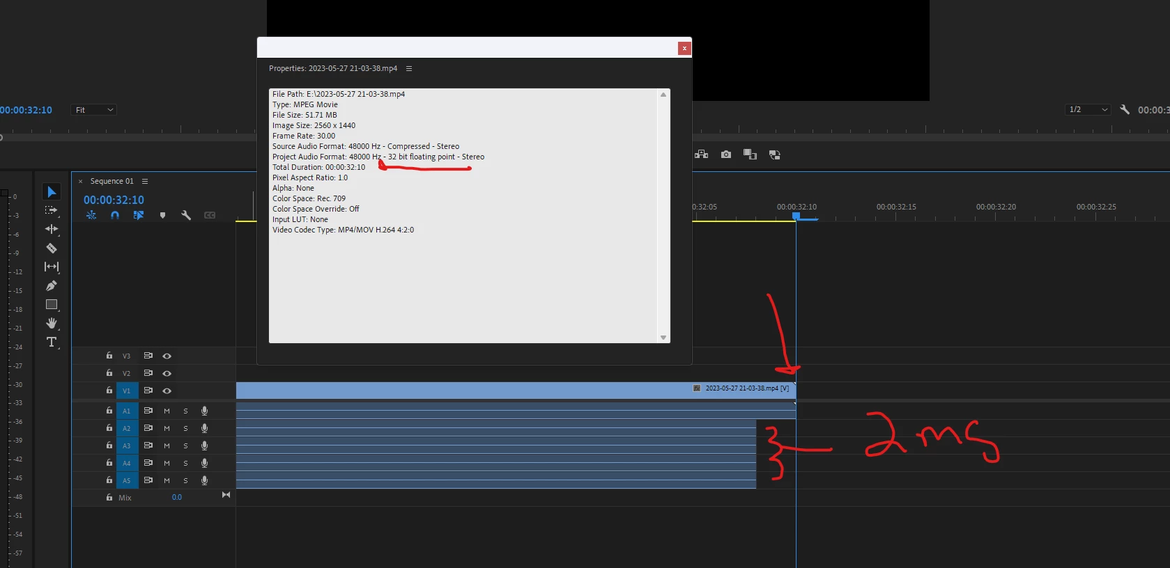 Premiere pro worked as designed until I recently decided to try an edit my 6 hour recording that I exported from OBS. Now, whenever I import any MP4 video, Audio Tracks 2-5 will be trimmed by 2ms at the end. Audio track 1 and Video track 1end when they are supposed to without any issues. I tried everything from resetting prefences, installing Streamlabs OBS (I use just obs and when I exported the MP4 File from Streamlabs, it still showed the 2ms being trimmed), using a different video editing software such as DaVinci Resolve (MP4 file showed correct audio tracks no trimming), and even resetting my pc completely wiping all files from it and starting like it was a new PC. I have no clue what I can do next. Attached are pictures from Premiere Pro. I will also attach MP4 if I am able to. Here is my google drive to MP4 video. Rendered MOV file is also in there, but not using that file only MP4. https://drive.google.com/drive/folders/1J8o_rSJVQKBfu0IWAxkHOiyy6TXMrM8N?usp=sharing