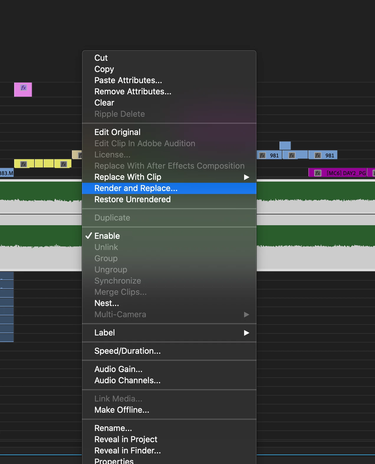 2. Right-clicking on the audio "line"