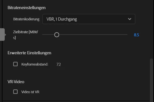 Ich habe bereits versucht in ein anderes Dateiformat zu exportieren, habe die Bitrate hochgestellt, habe an der Auflösung und Format rumgespielt und maximale Render-Qualität verwendet.