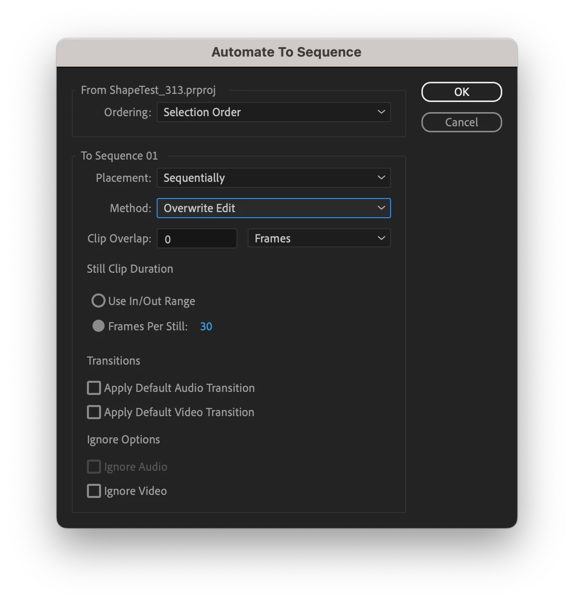 I have a problem creating videos with "automate to sequence".