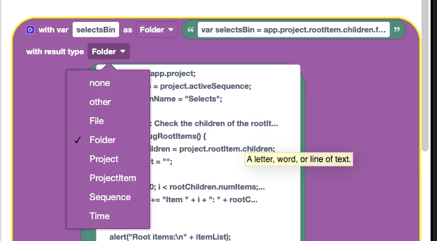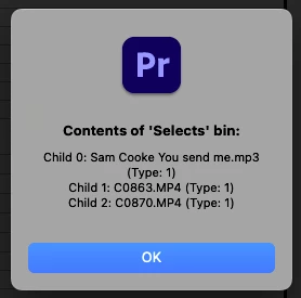 I've been working with OpenAI since I'm not a developer, and we have created a script that will recognize the Root Items in the project, find the 'Selects' bin and its contents, find the sequence and the video track and run through the processing of the clips and markers , but at the last stage it will consistently give me this message: ERROR: Object is not a folder (line 1)