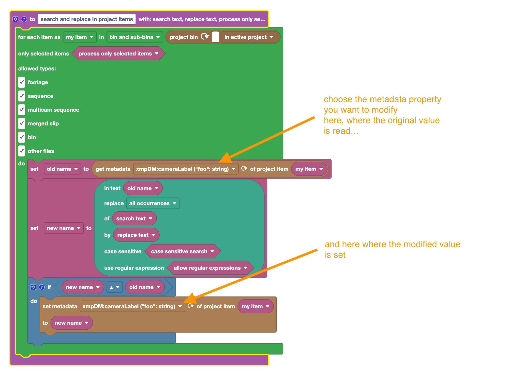 To learn more about the block code for search & replace tools see