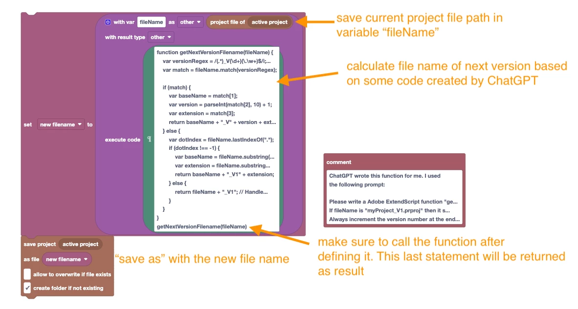 Today I got a question from @MyerPj how to implement a versioning system for Premiere Pro with my (paid) extension Automation Blocks for Pr.