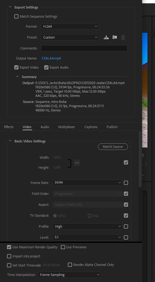 Im having issues with Premier Pro CC 2018. So i recorded a vlog with a gopro hero 7 black camera (1080p @283052). After exporting it, quality drops significantly. It pixelates and in some parts it gets even worse. I'll upload images with the export settings i used, and both before and after export images from the recording. I've read a few other posts invloving this issue and tried several settings but couldn't make it work.