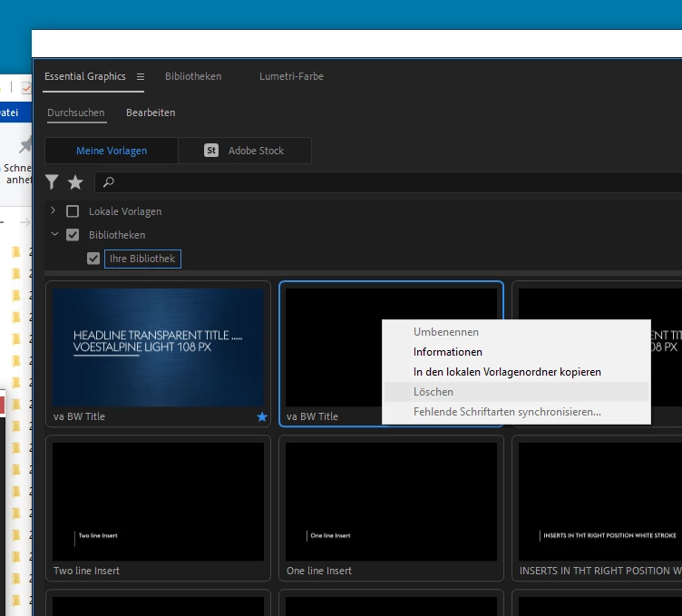 Betreff: Remove Motion Graphics Template from "My Library"