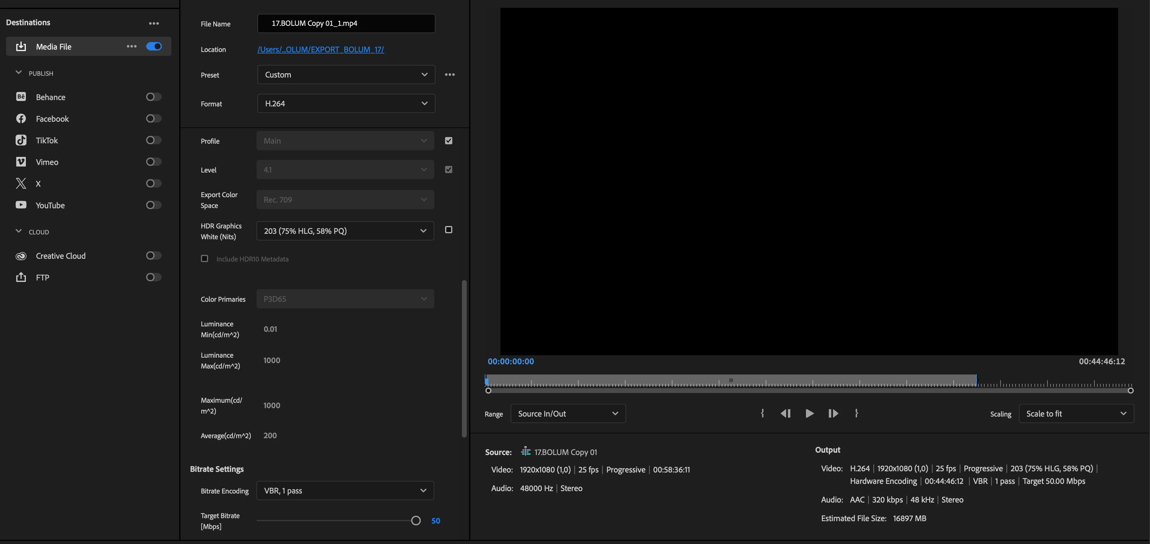 Hello. In the export settings, I see the bitrate properties at their highest settings. The export video is shown as 16 gb, but the export results later make the video 8 gb. Why could this be?