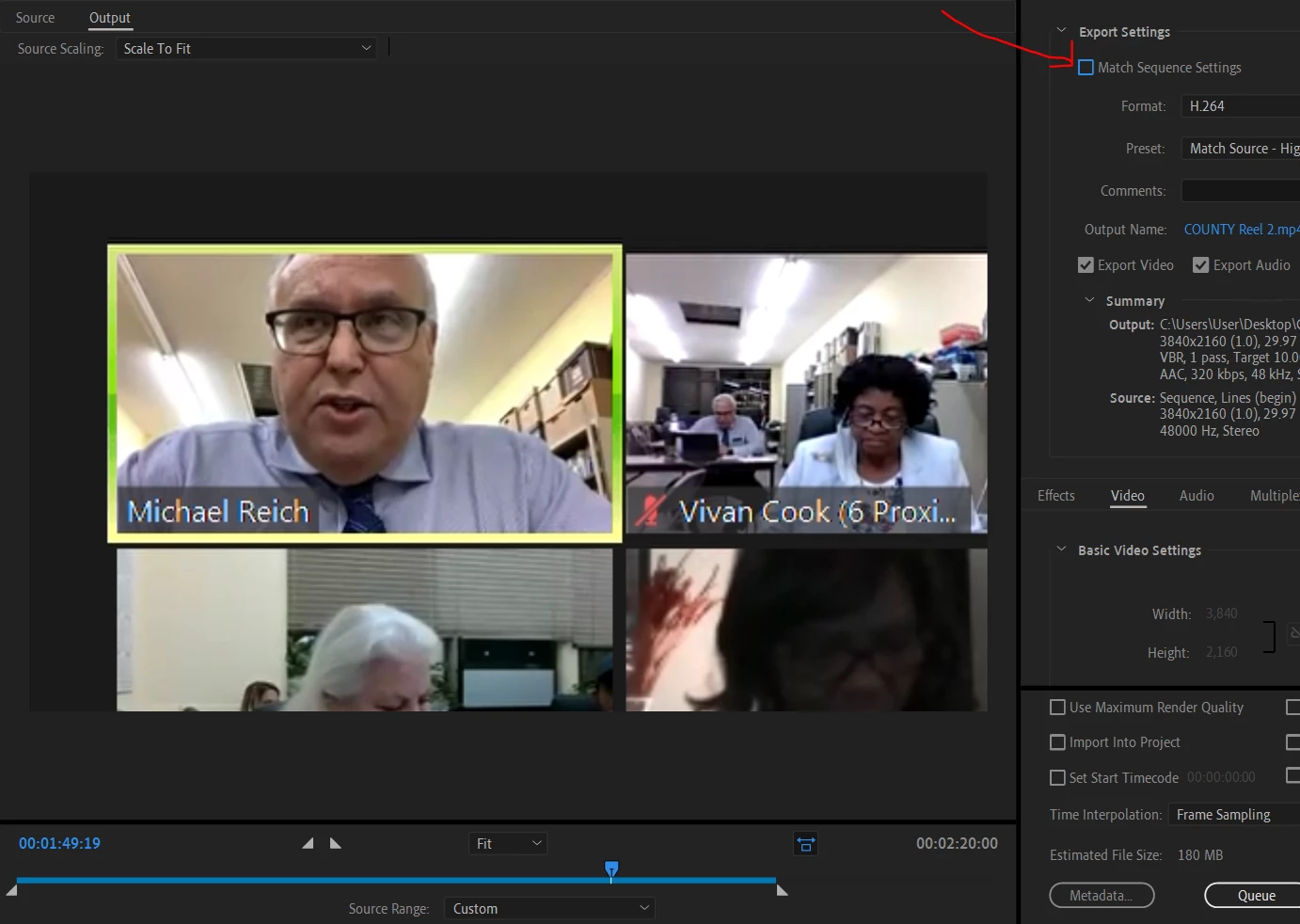 (left is MATCH SEQUENCE SETTINGS and right is not matched but H.264)