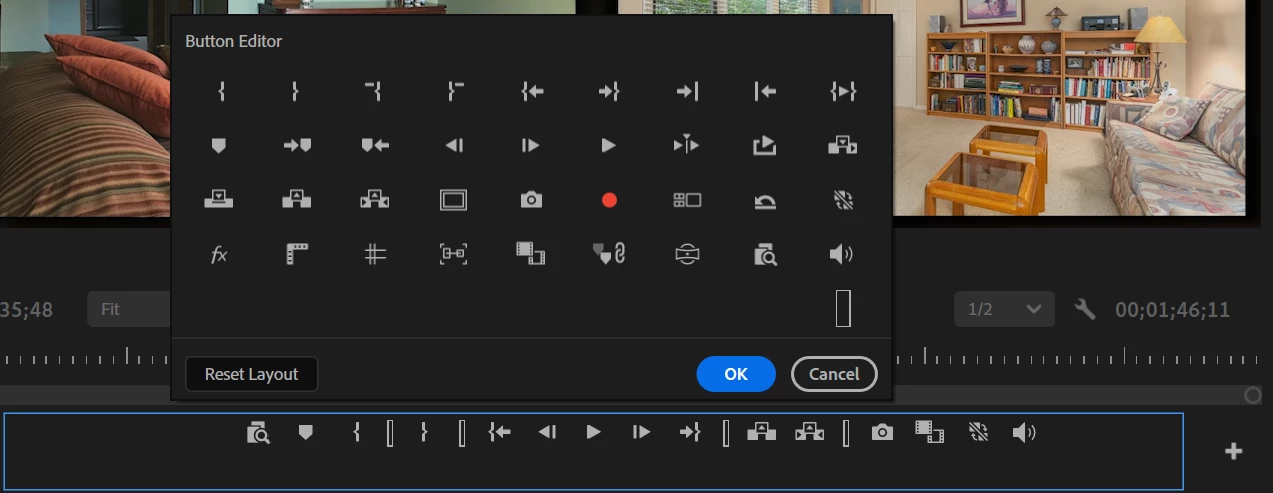 When I want to edit the buttons in the button editor, in the program monitor, the new “mute monitor” button shares the same place with the one that adds an empty space.