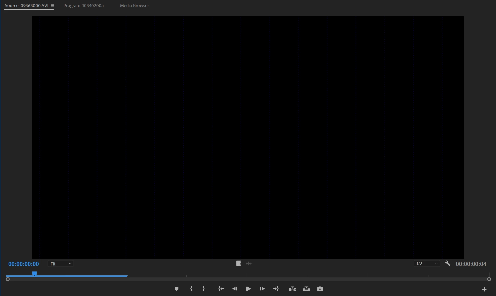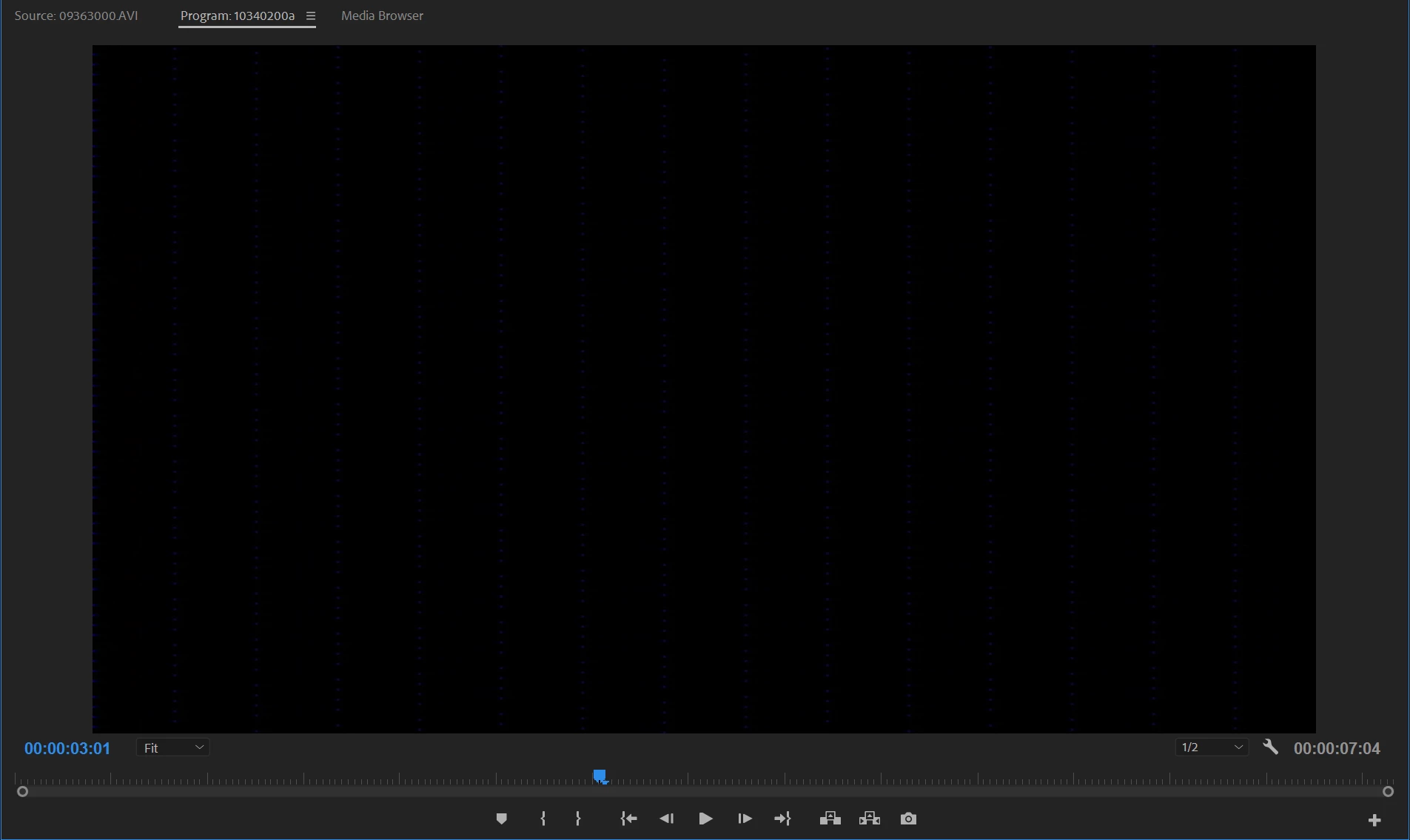 Now when I load in any of these clips they just show up as black with faint blue vertical lines. When I try to play back the clips the blue move slightly but I still only see black.