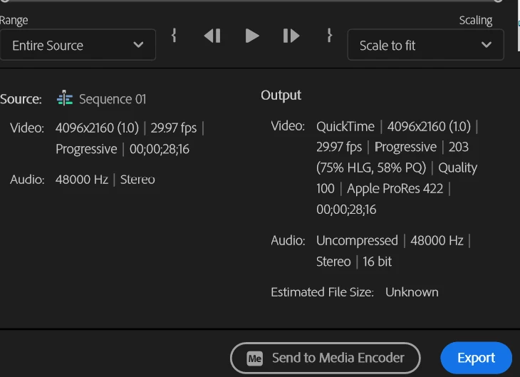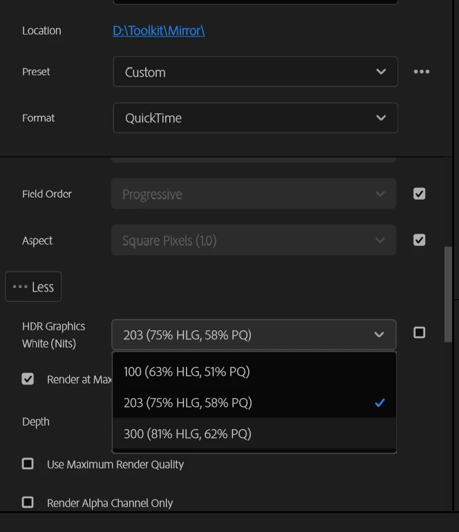 I'm trying to export video for use on Shutterstock. I have done so using H.264 with no problem but when I try ProRes it will not work on SS. When uploaded and I select view a larger preview, I get a message: "No video with supported format and MIME type found" and it will not play. SS support is telling me to turn of HDR - which I did not think was on, since I have not checked the box shown below - yet it seems like it picks one of the three options anyway. I don't know if this is really the issue at all, maybe support is mistaken.