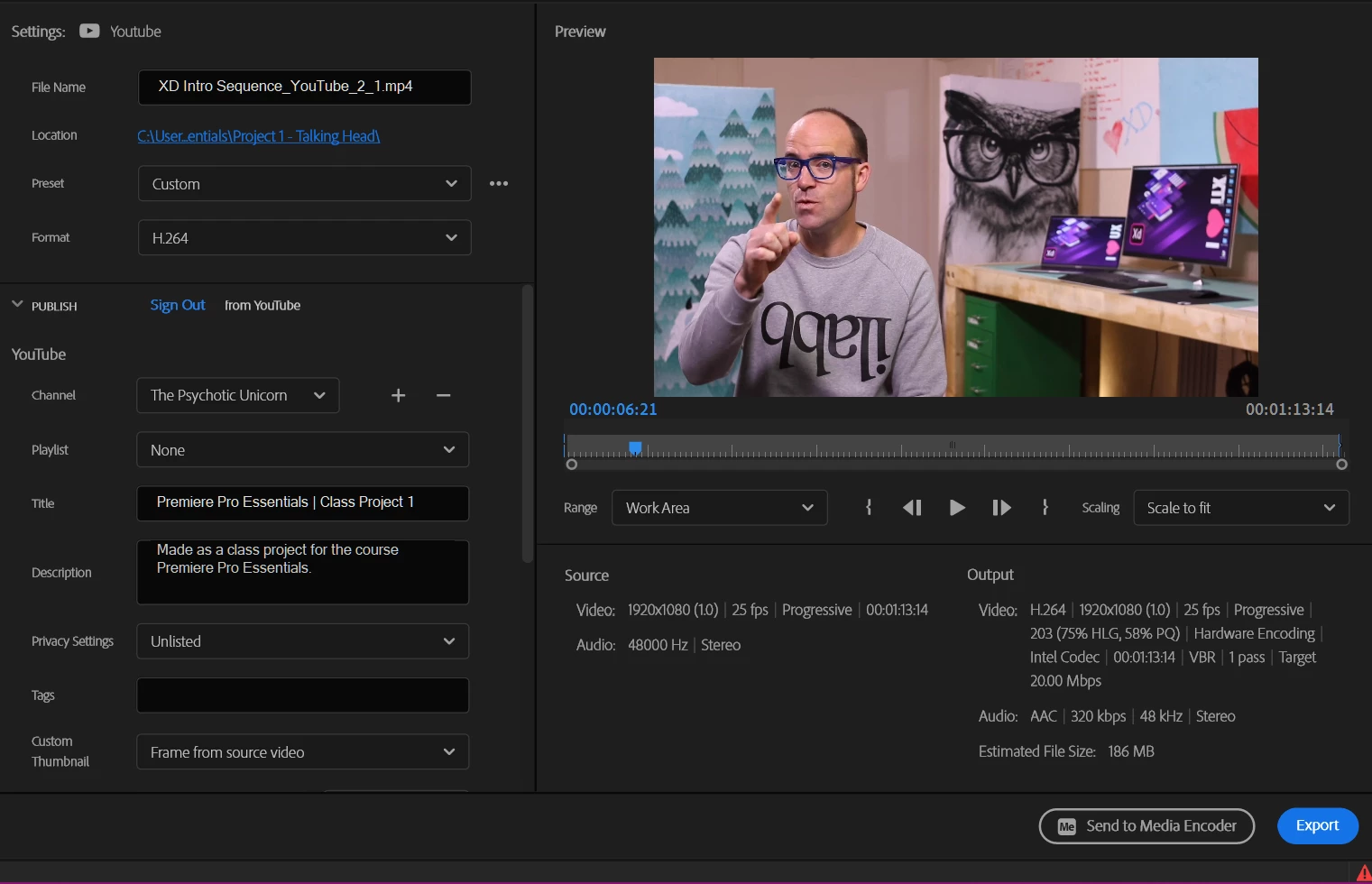 I'm having an issue when trying to publish a video on Youtube. I've signed into my account countless times and as you can see from the picture, in the channel selection tab I'm signed in before I click export.
