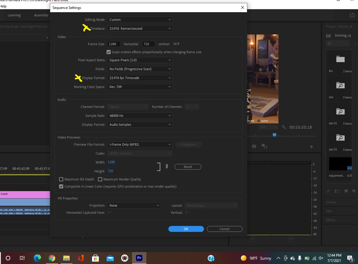 I'm a beginner to Premiere Pro, but I have learned simple video editing and I am currently having a hard time exporting video's to post on Youtube because the file sizes are still way to big. First, I made sure the sequences were 23.976 fps (as seen below).