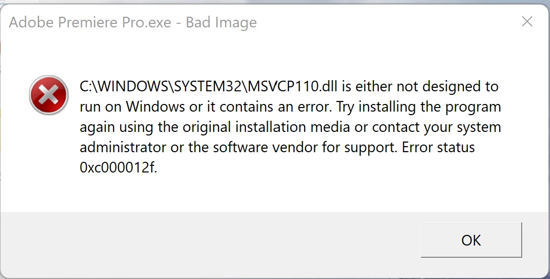 Tried to open Premiere Pro on a laptop I've used it before within the last few months. Get the following error message: