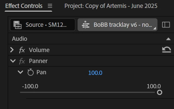 (Note, I'm not talking about panning entire audio tracks in the audio mixer, just within a single clip in the effects control).