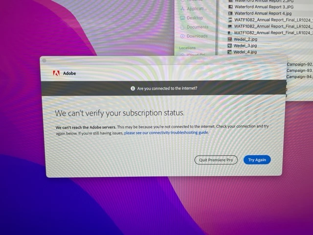 I am a high school video production instructor. We have Creative Cloud and all the normal video app installed on our iMacs, and as long as we are on the school network, we have not problems. When we are off-network, however, we cannot run the programs and get the "We can't verify your subscription status" error message. If I am able to log in through Creative Cloud, it seems like we can keep running the programs throughout the day, even if we're off the internet, but the next day they don't work again.