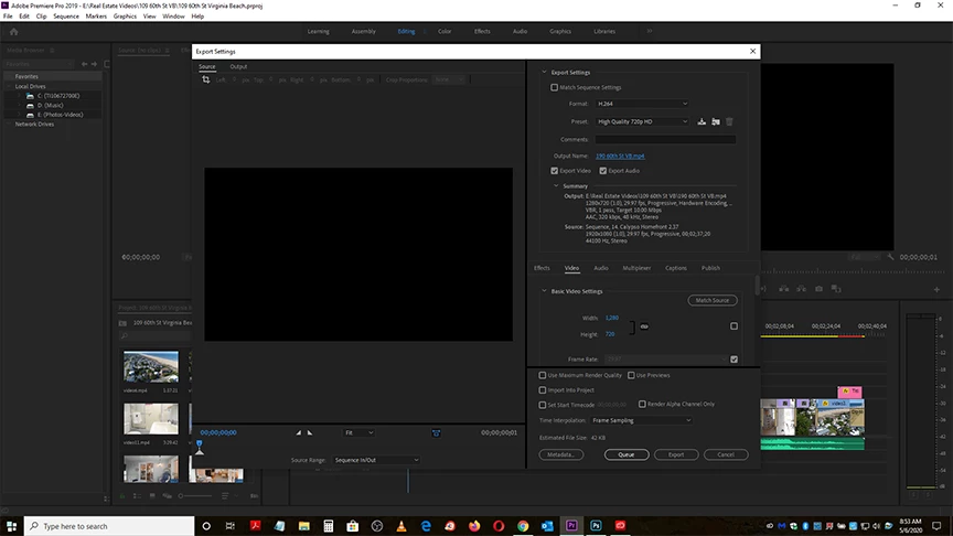 This is a strange one. I went to export my most recent 3-minute real estate video and all I get a zero-second black clip with an estimated file size of 47KB.