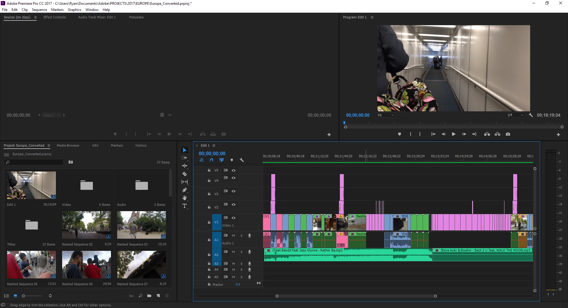 Hello, I can not for the life of me get waveforms to appear on certain clips in my premiere project. I am working on a pretty big project here, and have already spent 30+ hours on it, so I do not want to have to start over in any way. To explain the issue more, I just upgraded from CS6, and two of my background audio clips will not generate audio waveforms. They are located an A2, and there are other clips in that track that are showing waveforms. I have made sure waveforms are enabled by using the wrench icon. I have tried removing (both manually and through the program) the preview files and regenerating them multiple times. I'm at a bit of a loss here, and I need to get these working to streamline my "cutting to the beat" effect. Any help is appreciated! Thank you!
