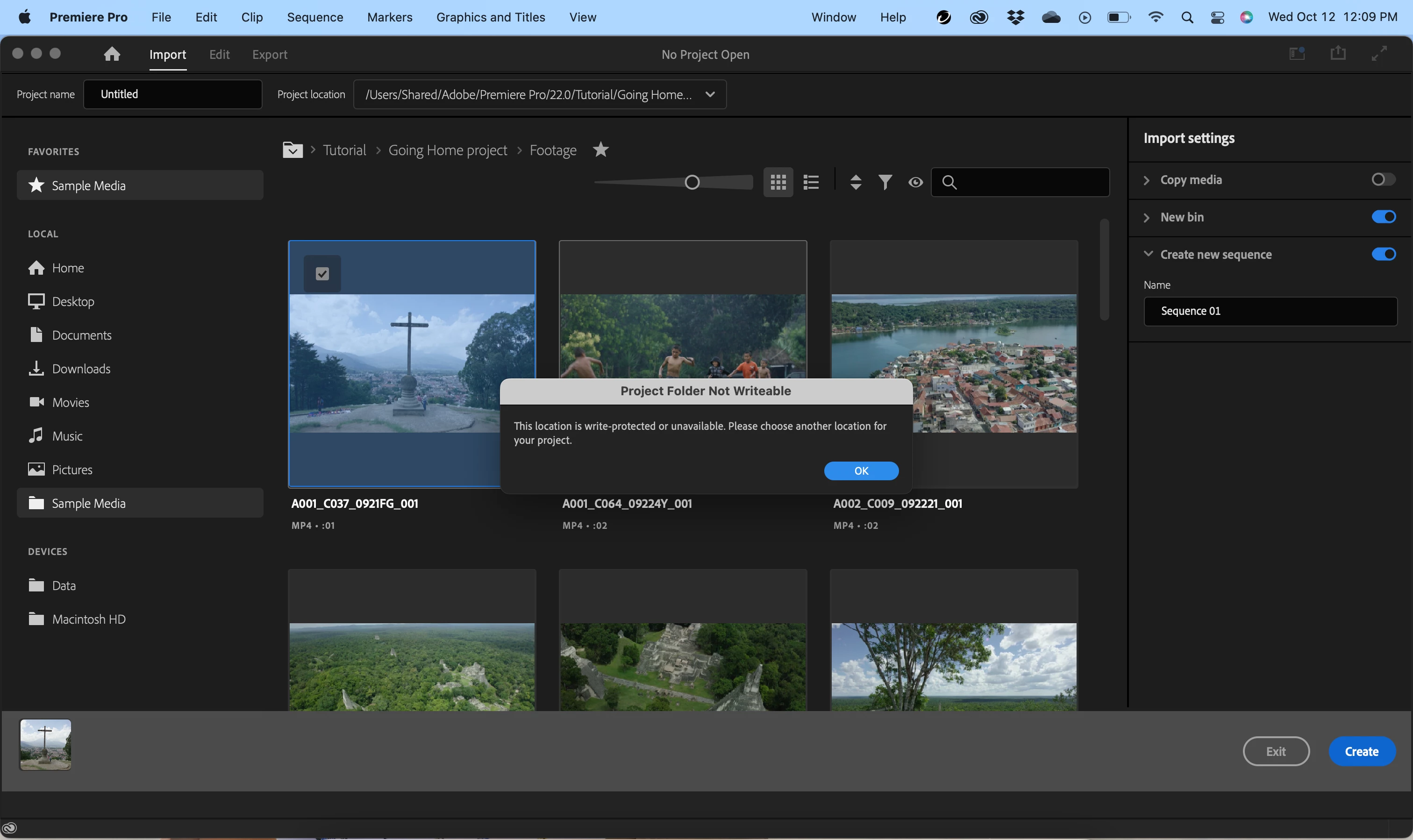 This error code is popping up when I try to access any file on Premier Pro. It says "Project Folder Not Writable," even the folder with the sample videos created when installing Premier Pro. I reinstalled the app, gave it full file permissions across the computer, and still the same error keeps popping up.