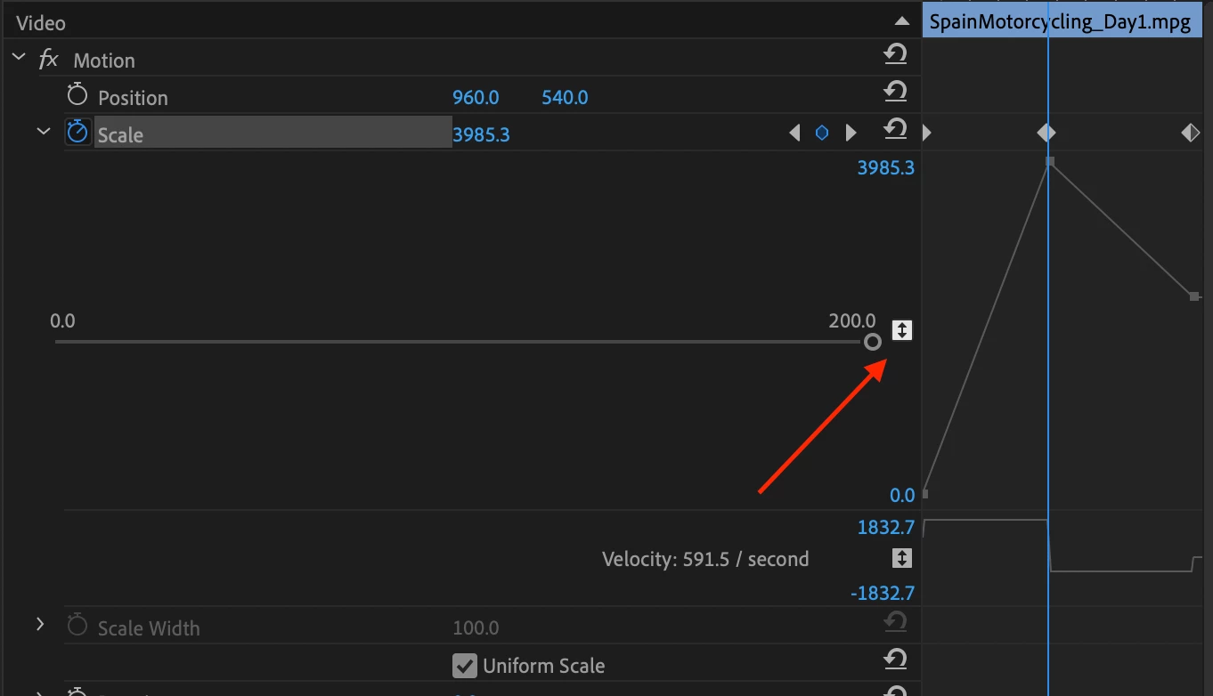 Cannot view entire graph of Scale effect in Adobe Premiere