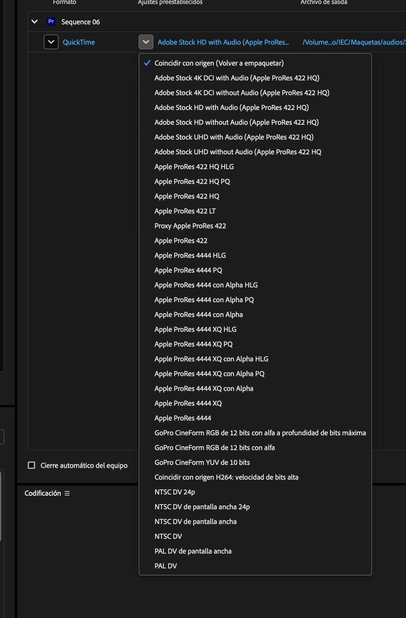 i need export a video with this codec but its not in te list of codecs for export in Premiere, someone can help me please?