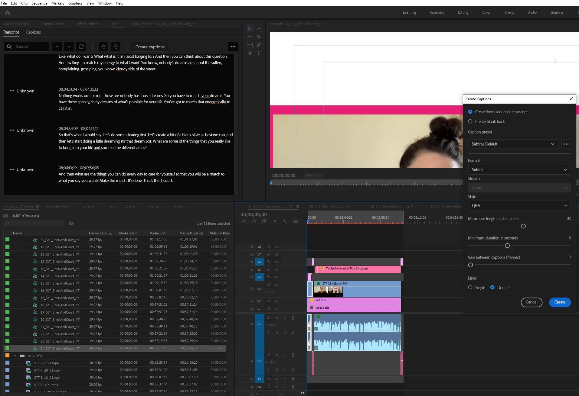Since updating to the new 22.0 Premiere, I'm having issues getting my captions to work. I'm able to transcribe the sequence as usual, but once I hit "create captions", it just creates a blank subtitle track with no captions (I'm hitting "Create from sequence transcript" and not "Create blank track" mind you.)
