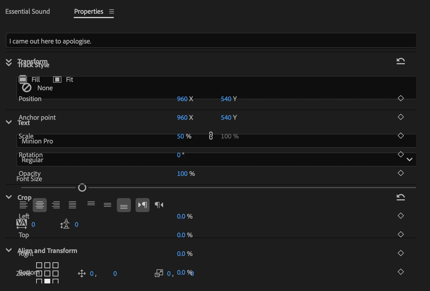Caption not working in Properties panel