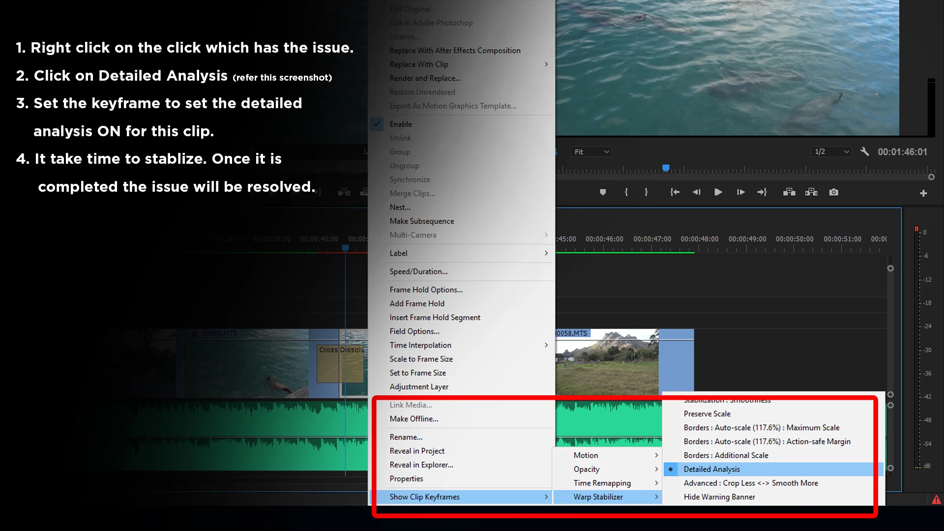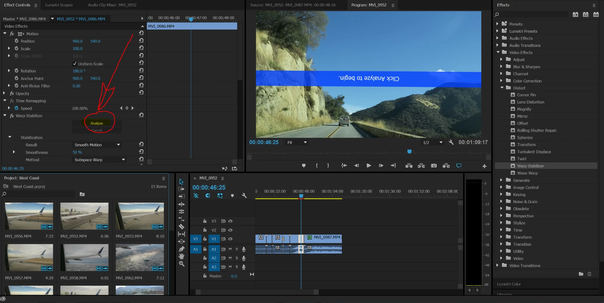 I'm working on a project right now in Premiere Pro CS6 and for some reason the "click analyze to begin" blue bar for warp stabilizer will not go away, even after it has been analyzed. I tried exporting it thinking that it would go away, but nope, it seems to be baked into the image. I need to get this project turned in to a client as soon as possible. Is there any way to fix this without have to replace/re-link some of the footage?