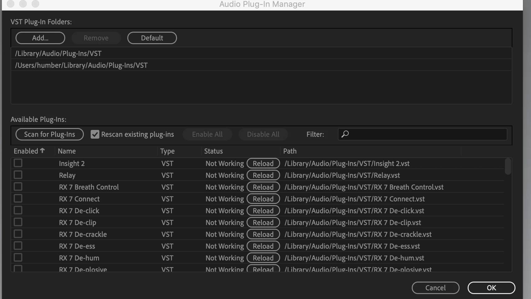I have a client here attempting to run VST Plug-ins in Premiere Pro 2020 (Mac/Catalina) however she recieves the following error: