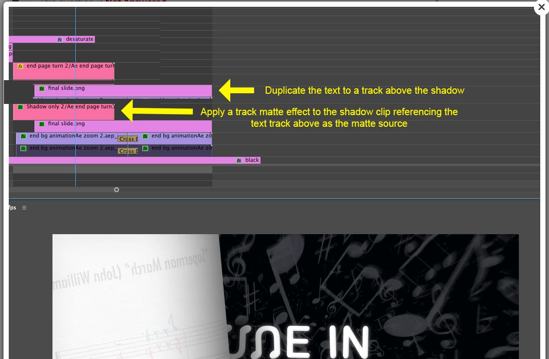 My issue involves 3 layers: A shadow layer on top of a text layer on top of a background layer